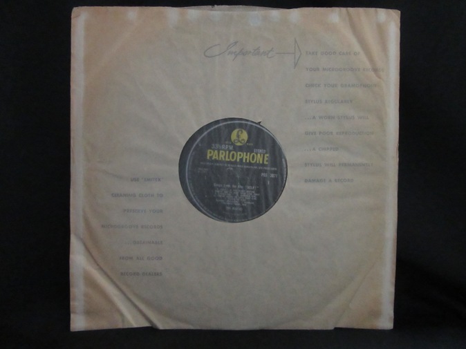 18000円(内税) ジャケット外側と内側がテキスチャード加工されたオリジナル初版ジャケット。Gramophoneリム、マトリックス両面1のファーストプレス。盤面薄いスレありますが、光沢があり、針飛び無く良い音で再生できます。大変珍しいダイカット型のEMIカンパニーインナー付き。マトリックスは A-1U,B-1U です。PIC1 PIC2 PIC3 PIC4 PIC5 PIC6 PIC7 |