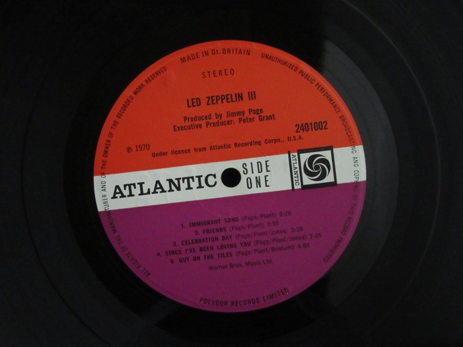 Ex/Ex+ 39800円(内税) オリジナル見開き回転ジャケット。レーベルに Peter Grant クレジットがあり、マトリックスが両面5番のファーストプレス。オリジナル「PLASTIC BAGS」表示インナー付き。美盤。「移民の歌」は是非この英国オリジナルで聴いて下さい。マトリックスは A-5,B-5 です。PIC1 PIC2 PIC3 PIC4 PIC5 PIC6 PIC7 |