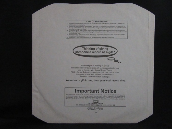 Ex+/Ex+ 15800円(内税) インナー付き。両面マト2の英国ファーストプレス。ほとんどがドイツプレスのヨーロッパ共通盤なので大変レアです。美品。B面にプレスミスによるミリ単位の変色がありますが、再生には関係ありません。メタルマザー、スタンパーは 1 NMT/ HMT です。マトリックスは A2,B2 です。PIC1 PIC2 PIC3 PIC4 PIC5 PIC6 PIC7 |