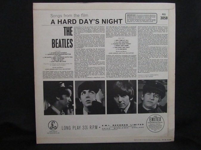 | ◆ EP BEATLES / Extracts From The Album A Hard Day's Night (UK Y/B Parlophone) Ex-/Ex 12800円(内税) オリジナル折り返しジャケ。PARLOPHONEリム、SOLD IN UKレーベル表示。大変レアな赤い方のジャケット。メタルマザー、スタンパーは KT1 A/KT1 AA です。わずかですが、ジャケットの印刷がズレています。マトリックスは 850-1N,851-1N です。PIC1 PIC2 PIC3 | |