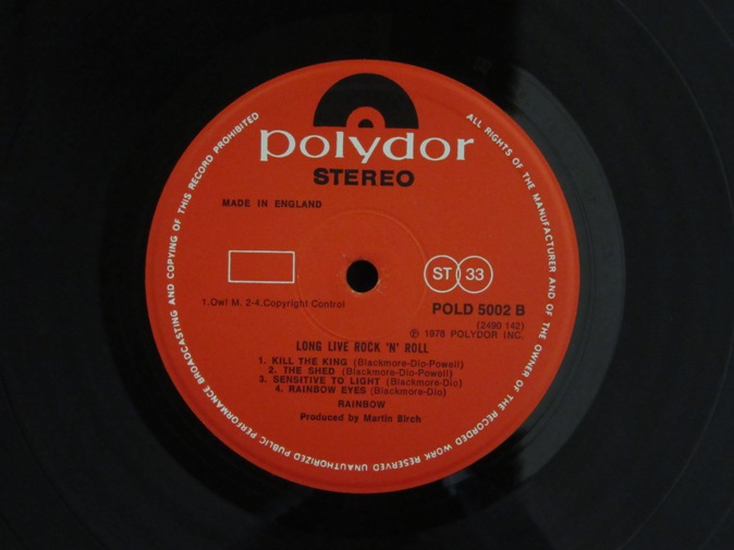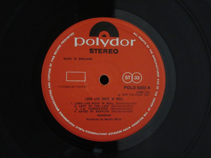 ![]() | ◆ LP RAINBOW / Long Live Rock'n Roll (UK Polydor) Ex-/Vg++ 5800円(内税) オリジナル見開きジャケ。名盤。名曲「バビロンの城門」、「Kill The King」は是非このオリジナル盤で聴いて下さい。インサート、「PLASTIC BAGS...」表示インナー付き完品。盤面薄いスレありますが、針飛び無く良い音で再生できます。外周部にミリ単位で欠けている部分がありますが、再生には影響ありません。マトリックスは A//2,B//1 です。PIC1 PIC2 PIC3 PIC4 PIC5 PIC6 PIC7 |