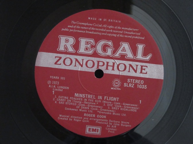 | ◆ LP Roger COOK / Minstrel In Flight (UK Regal Zonophone Stereo) Ex-/Ex- 5800円(内税) オリジナル絹目加工ジャケット。大変分かりずらいですが、裏ジャケット上部にミリ単位のコスレ(下地が少し見えている)があります。マトリックスは 105-1,106-1 です。PIC1 PIC2 PIC3 PIC4 PIC5 PIC6 PIC7 | |