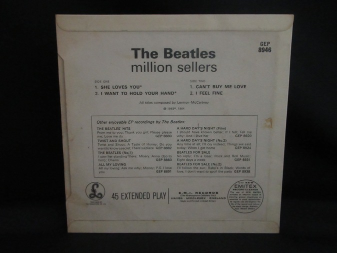 | ◆ EP BEATLES / Million Sellers (UK Y/B Parlophone) Ex-/Ex- 9800円(内税) オリジナル折り返しジャケ。SOLD IN U.K.レーベル表示。プッシュアウトセンター。マトリックス両面1、レーベル「Golden Discs」表示のファーストプレス。メタルマザー、スタンパーは 1 GR/33 GA です。マトリックスは 888-1,889-1 です。PIC1 PIC2 PIC3 | |