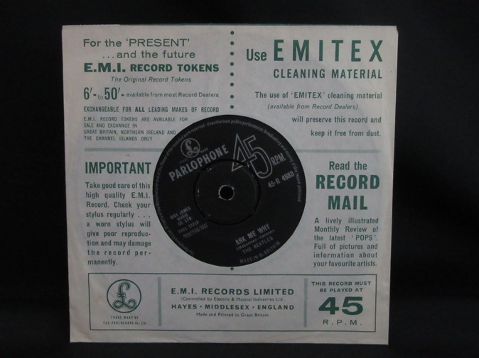 | ◆ 45 BEATLES / Please Please Me (UK Parlophone) -/Vg 3800円(内税) カンパニースリーブ付き。Soldリマークなし、リム沿いParlophone表示のブラックレーベルの初盤。メタルマザー、スタンパーは MPT1 /MPT1 T です。盤面スレ・キズありますが、針飛び無くまともな再生できます。マトリックスは 17217-1N,17218-1N です。PIC1 PIC2 PIC3 | |