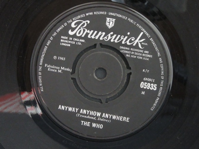 | ◆ 45 WHO / Anyway Anyhow Anywhere (UK Brunswick) -/Vg+ 4800円(内税) カンパニースリーブ付き。プッシュアウト・センター。収録曲は「ANYWAY ANYHOW ANYWHERE」、「Daddy Rolling Stone」です。盤面スレていますが、針飛び無く良い音で再生できます。マトリックスは 1C,1C です。PIC1 PIC2 PIC3 | |