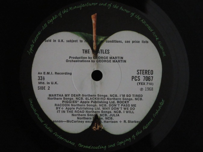 Ex/Ex/Ex 78000円(内税) 「ROCKY RACOON」 ミスクレジットの激レア盤。トップオープン、シリアル番号0554XXX番台、4枚の厚手ピンナップ、ポスター、2枚のブラックインナー付き。Sold In UK レーベル表示。An EMI Recordingレーベル表示あり。背美品。メタルマザー、スタンパーは 1 RM/2R/1 PPG/7 GMT です。マトリックスは 709-1,710-1,711-1,712-1 です。PIC1 PIC2 PIC3 PIC4 PIC5 PIC6 PIC7 |