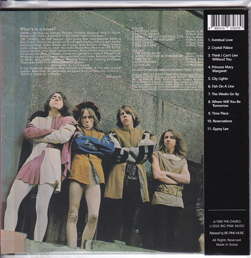 ![]() | ◆ CD Churls / S/T (BIGPINK Bigpink1020) 2400円(内税) (アーティストの母国:カナダ 商品の原産国:韓国) トロント産ガレージ・サイケ・バンド、68年ファースト。ポップなメロディーと疾走するギターが印象的なサイケデリック・ロック・サウンド。紙ジャケット仕様。PIC1 PIC2 |