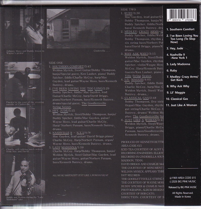 ![]() | ◆ CD Area Code 615 / S/T (BIGPINK Bigpink1021) 2400円(内税) (アーティストの母国:米国 商品の原産国:韓国) ナッシュヴィル産サイケデリック/カントリー・ロック・バンド、69年ファースト。ボブ・ディランのバックも務めたナッシュヴィル一流のセッションマンによるバンド。ハーモニカとフィドルが印象的なサイケデリック/カントリー・ロック・サウンド。名盤。紙ジャケット仕様。PIC1 PIC2 |