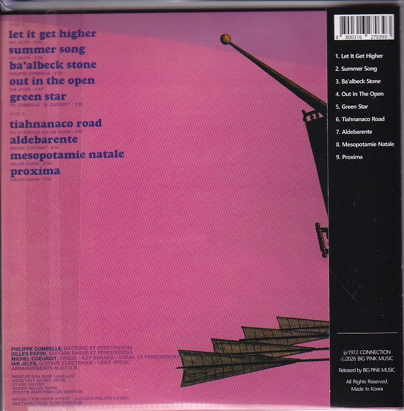 ![]() | ◆ CD M.O.T.U.S / Machine Of The Universal Space (BIGPINK Bigpink1022) 2400円(内税) (アーティストの母国:フランス 商品の原産国:韓国) 仏産幻のアートロック/プログレバンド、72年唯一作。CIRCUSに在籍した英国人Ian Jelfs(g/vo)が参加。多彩なキーボード、オルガン、ギターを軸としたジャジーなプログレサウンド。英語詩。紙ジャケット仕様。PIC1 PIC2 |