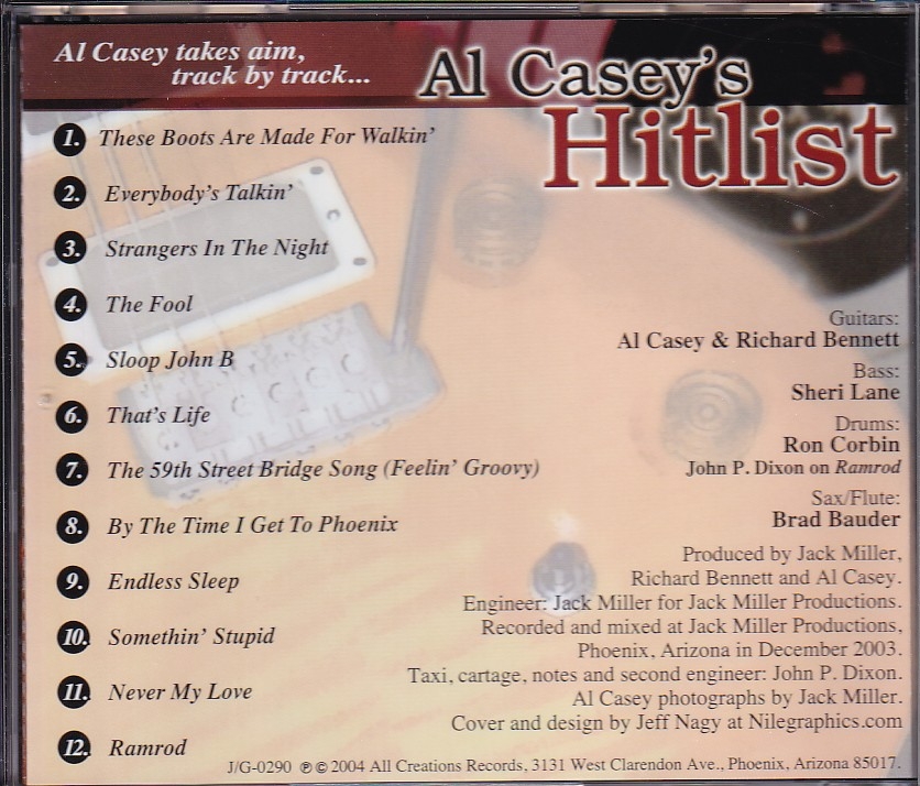 ![]() | ◆ CD AL CASEY / Hit List (All Creations JG-290) 2150円(内税) (アーティストの母国:米国 商品の原産国:米国) 米国人ギタリスト、2004年作。リチャード・ベネットが参加。ジャジーで控えめなイージーリスニングのインストゥルメンタル・ギター・サウンド。PIC1 PIC2 |