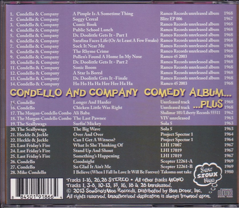 ![]() | ◆ CD MIKE CONDELLO / Comedy Album Plus (SewSiouxMee Records SSM411) 2150円(内税) (アーティストの母国:米国 商品の原産国:米国) ブルックリン出身のロックミュージシャン/プロデューサー/ソングライター、68年の未発表の風刺アルバムにコンデロ、ラスト・フライデーズ・ファイアー、ザ・スカリーワグス、ヘックル・アンド・ジェックル、ザ・モーガン・コンデロ・コンボなどによるコンデロ関連のレアな45回転盤トラックを収録。豪華24ページのブックレット付き。PIC1 PIC2 |