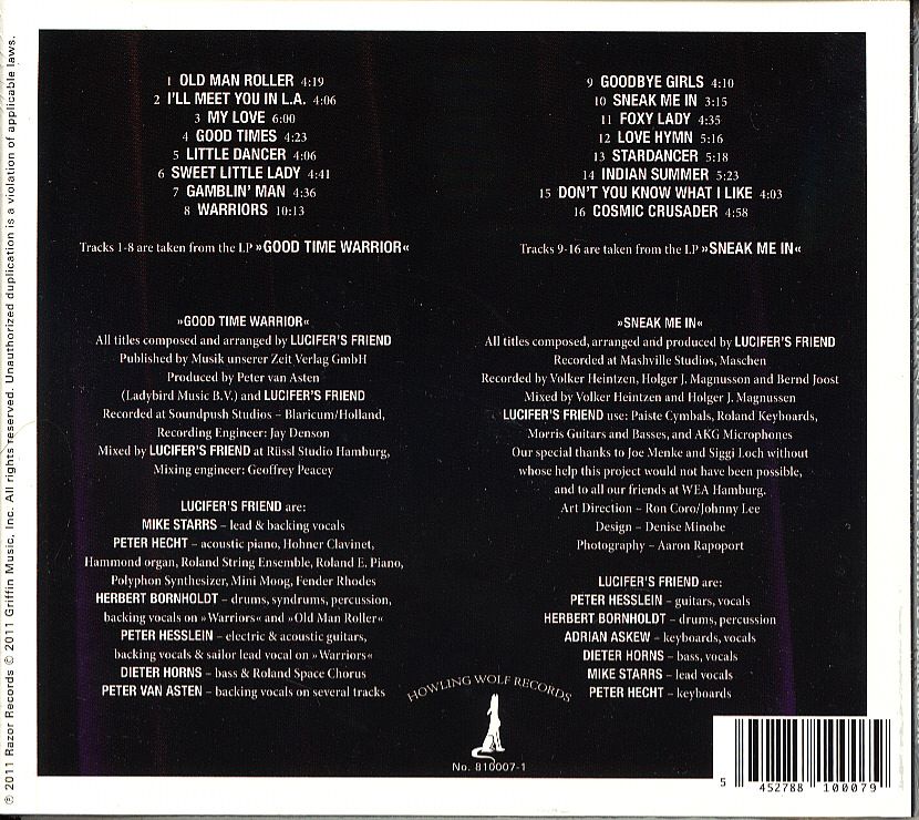 ![]() | ◆ CD LUCIFER'S FRIEND / Good Time Warrior & Snake Me In (HOWLING WOLF 8100071-1) 2550円(内税) (アーティストの母国:ドイツ 商品の原産国:EU) 独産ハード・ロック名バンド、78年作と80年作の2 IN 1。デジパック仕様。PIC1 PIC2 |