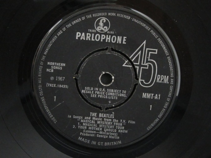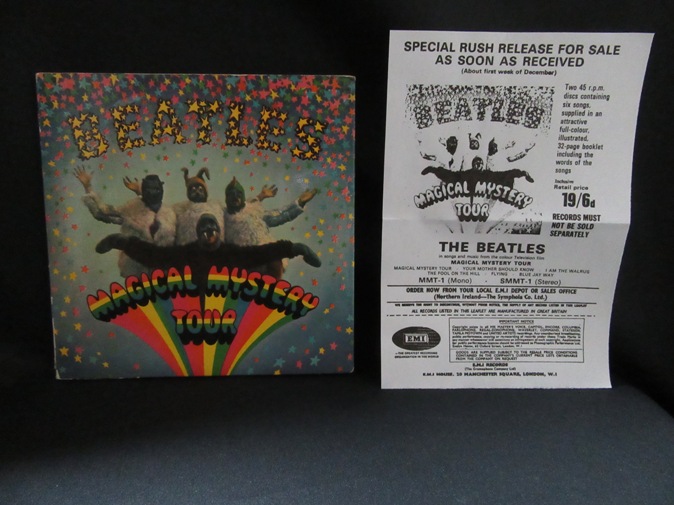 | ◆ 2 EP BEATLES / Magical Mystery Tour (UK Parlophone mono) Vg++/Vg++/Vg+ 8800円(内税) DISC1がプッシュアウト・センター、DISC2がハード・センター。SOLD IN U.K. レーベル表示、マトリックス1/1/1/2、ブルーの歌詞カードが挟まったファーストプレス。発売当時のフライヤーのコピーがおまけで付きます。メタルマザー、スタンパーは 1 MD/3 RH/4 MP/9 DPG です。盤面スレありますが、針飛び無くまともな音で再生できます。マトリックスは 18435-1,18434-1,18436-1,18437-2 です。PIC1 PIC2 PIC3 PIC4 PIC5 PIC6 PIC7 | |