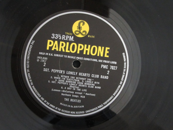 | ◆ LP BEATLES / SGT. Pepper's Lonely Hearts Club Band (UK Y/B Parlophone stereo) Ex-/Vg++ 12800円(内税) SOLD IN U.K.レーベル表示。オリジナル見開きジャケ。切り抜きインサート付き。プレインホワイトインナー。ファーストプレス。Who's Who インサートのコピーがおまけで付きます。メタルマザー、スタンパーは 3 GOG/2 GOD です。盤面薄いスレありますが、針飛び無く良い音で再生できます。マトリックスは 637-1,638-1 です。PIC1 PIC2 PIC3 PIC4 PIC5 PIC6 PIC7 | |