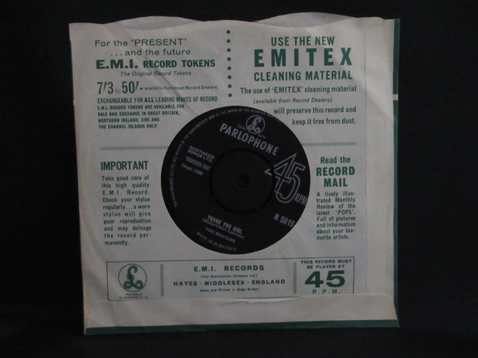 | ◆ 45 BEATLES / From Me To You/Thank You Girl (UK Parlophone) -/Ex+ 7800円(内税) レーベルリム沿い PARLOPHONE CO LTD 表示。プッシュアウトセンター。ファーストプレス。カンパニースリーブ付き。美品。メタルマザー、スタンパーは MT5 GRD/MTC GOM です。マトリックスは 17329-1N,17330-1N です。PIC1 PIC2 PIC3 PIC4 | |