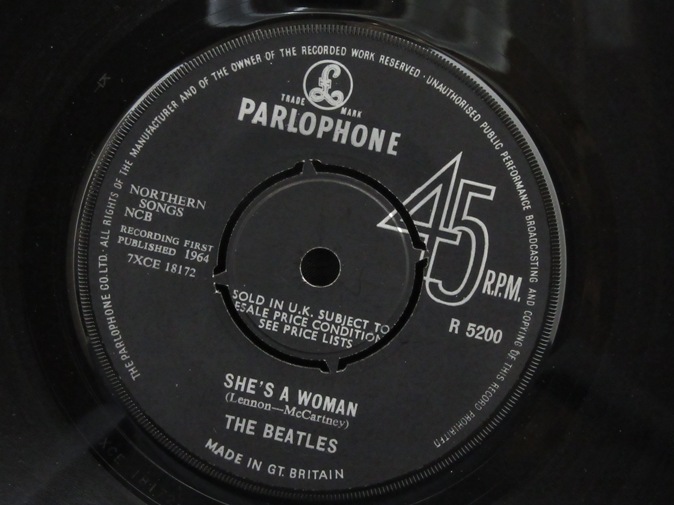 | ◆ 45 BEATLES / I Feel Fine/She's A Woman (UK Parlophone) -/Ex+ 6800円(内税) プッシュアウトセンター。SOLD IN U.K.レーベル表示。レーベルリム沿い PARLOPHONE CO LTD 表示。Recording First Published 1964 レーベル表示。ファーストプレス。カンパニースリーブ付き。メタルマザー、スタンパーは KT11 PR/KT7 HO です。マトリックスは 18171-1N,18172-1N です。PIC1 PIC2 PIC3 PIC4 | |