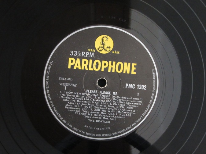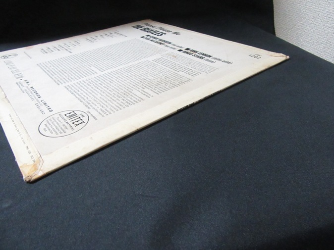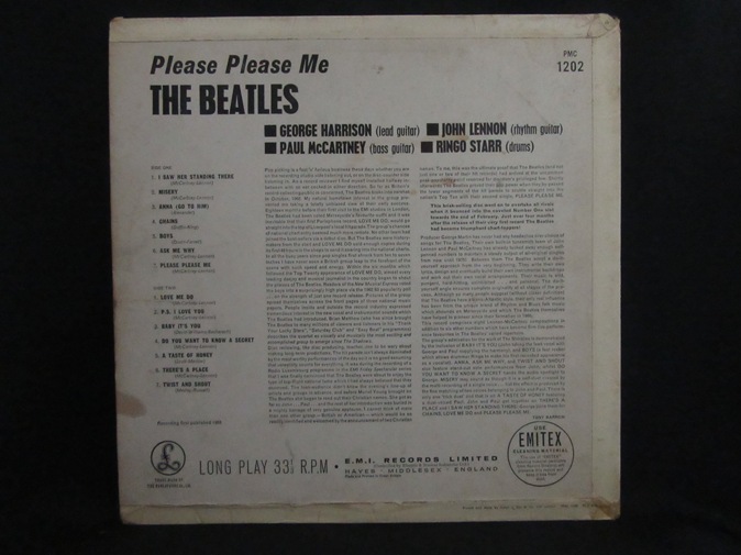 | ◆ LP BEATLES / Please Please Me (UK Gold Parlophone Mono) Vg/Vg 78000円(内税) Dick Jamesクレジットの初盤。インナー付き。ビートルズのオリジナルプレスの中で最も荒々しい音が聞ける一枚。世に出た最初の彼らのLPレコード。裏ジャケットフリップバック上部に傷みがあります。裏ジャケットに名前の書き込みがあります。B-2とB-3で前方への針飛びが1回ずつあります。それ以外は針飛び無くまともな音で再生できます。レーベルの発色はきれいです。右下の「Angus McBean」が右寄りの初版ジャケット。マザ−・スタンバーは1 GO/1 Hです。そんなに悪くないですが、念のためジャンク品とお考え下さい。マトリックスは 421-1N,422-1N です。PIC1 PIC2 PIC3 PIC4 PIC5 PIC6 PIC7 | |