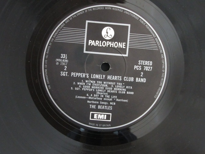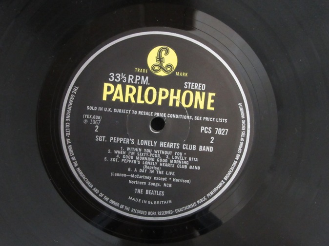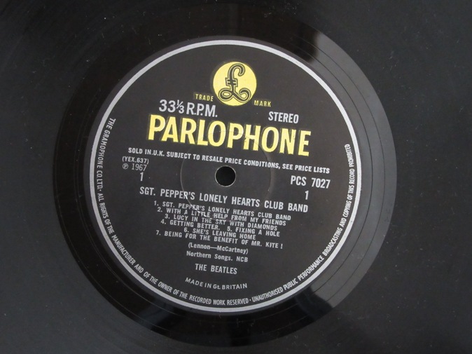 | ◆ LP BEATLES / SGT. Pepper's Lonely Hearts Club Band (UK Y/B Parlophone stereo) Ex-/Vg++ 12800円(内税) SOLD IN U.K.レーベル表示。オリジナル見開きジャケ。切り抜きインサート付き。プレインホワイトインナー。ファーストプレス。Who's Who インサートのコピーがおまけで付きます。メタルマザー、スタンパーは 3 GOG/2 GOD です。盤面薄いスレありますが、針飛び無く良い音で再生できます。マトリックスは 637-1,638-1 です。PIC1 PIC2 PIC3 PIC4 PIC5 PIC6 PIC7 | |