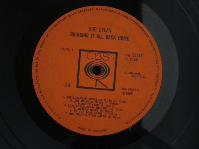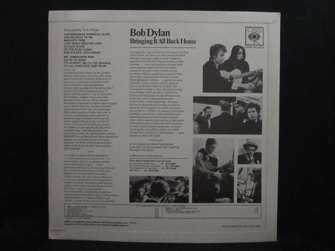 | ◆ LP Bob DYLAN / Bringing It All Back Home (UK CBS Mono) Ex+/Ex+ 19800円(内税) オリジナル・フリップバック(折り返し)ジャケット、オレンジレーベル、マトリックス両面1のファーストプレス。美品。めったに出ないコンディションです。マトリックスは A-1,B-1 です。PIC1 PIC2 PIC3 PIC4 PIC5 PIC6 PIC7 | |