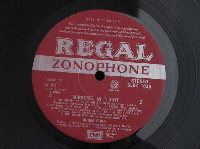 | ◆ LP Roger COOK / Minstrel In Flight (UK Regal Zonophone Stereo) Ex-/Ex- 5800円(内税) オリジナル絹目加工ジャケット。大変分かりずらいですが、裏ジャケット上部にミリ単位のコスレ(下地が少し見えている)があります。マトリックスは 105-1,106-1 です。PIC1 PIC2 PIC3 PIC4 PIC5 PIC6 PIC7 | |